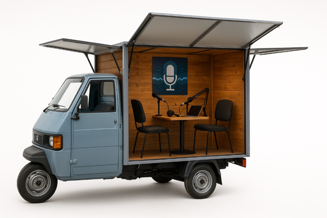 Mit unserem mobilen Studio bringen wir modernste Technik direkt zu Ihnen: Kameras, Mikrofone, Mischpulte und Beleuchtung sind an Bord – alles, was man für professionelle Podcasts und Videoproduktionen braucht. Über Pop-Up-Pavillons lässt sich das Studio flexibel erweitern und schafft so Platz für Workshops und Unterricht im Freien. Ob eigene Projekte, Schulungen oder kreative Experimente: Unser Studio kann auch für die Produktion individueller Formate angemietet werden.